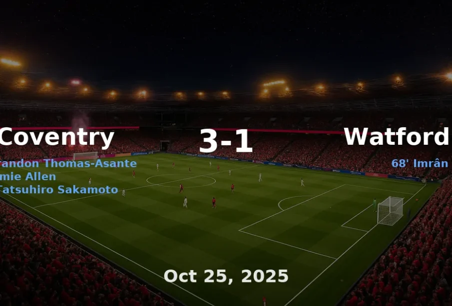 The first half saw both sides testing each other’s defences, with Coventry’s tactical approach focusing on ball retention and quick transitions. Watford, employing a more aggressive style, aimed to exploit counter-attacking opportunities. The deadlock was broken in the 34th minute when Coventry’s striker found the net, sending the home fans into a frenzy.