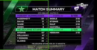 Hobart Hurricanes vs Melbourne Stars: Match Scorecard and Report