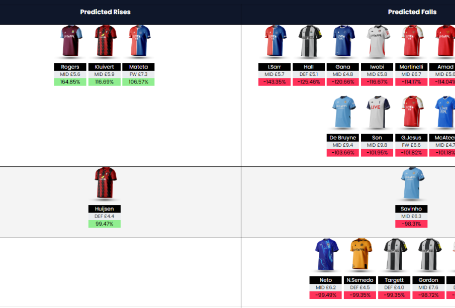 As of October 2023, FPL has witnessed notable price fluctuations influenced by player performances, injury updates, and managerial tactics. Each week, player prices can rise or fall based on their popularity among managers and their contributions on the pitch. For instance, standout performances in crucial matches can lead to immediate price increases for players, while poor performances might result in price drops.